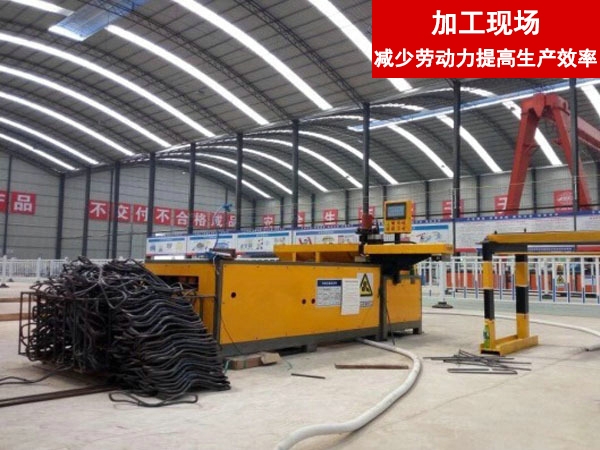 格柵拱架作為隧道拱架的一種常用于公路鐵路隧道,礦山巷道施工的初期支護(hù)中,而 8 字筋是格柵拱架中的重要組成,其形狀復(fù)雜, 數(shù)量巨大,加工難度大,工人勞動強(qiáng)度高。濟(jì)寧市旭輝數(shù)控機(jī)械有限公司一直致力于數(shù)控鋼筋彎箍機(jī)的研制,我們針對 8 字筋的特殊形 狀和要求,在原基礎(chǔ)上加以改進(jìn),讓原本復(fù)雜的加工變得更加簡單、標(biāo)準(zhǔn)、節(jié)能。我們深入加工現(xiàn)場了解傳統(tǒng)加工的諸多難處, 在設(shè)計(jì)當(dāng)中加入現(xiàn)代化制造的先進(jìn)理念和元素,那就是精益化生產(chǎn), 各個(gè)工序的產(chǎn)品沒有堆積(不占地方),產(chǎn)品不需要人力運(yùn)轉(zhuǎn)運(yùn)輸, 讓我們生產(chǎn)的產(chǎn)品意義上的流動起來,讓我們的生產(chǎn)現(xiàn)場空間更好的利用,整個(gè)生產(chǎn)線整潔和諧,企業(yè)形象得到根本上的改善。